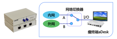 (2)瘦终端接到I/O口,内网接到A口,外网接到B口(A口和B口,同一时间只有一个网口可以通信);