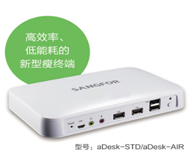aDesk瘦客户机是一种理想的替换传统桌面PC的设备,它外形小巧,无噪音运行,日常耗电量仅需10瓦,是真正意义上的经济环保型电脑。aDesk允许随时随地连接虚拟桌面平台,不仅可获得与传统PC一致的访问体验,而且提供了额外的安全性和广泛的可扩展性;同时通过虚拟桌面控制器VDC进行中央管控,极大简化aDesk瘦客户机终端管理工作。
